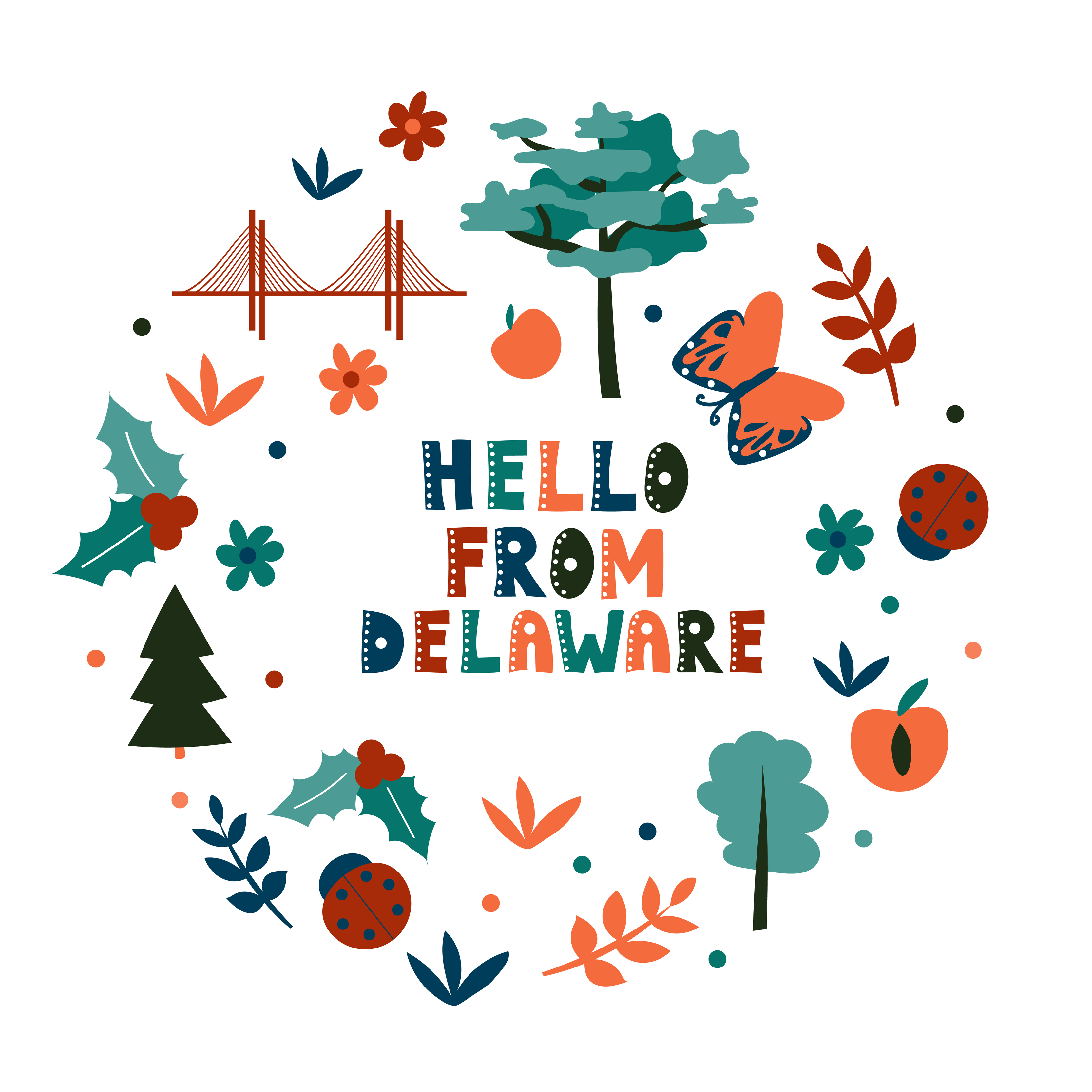 Usa Collection Hello From Delaware Theme State Symbols 4558787 Vector Art At Vecteezy
